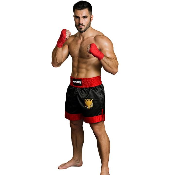 FIGHTERS - Muay Thai Shorts / Albanien-Shqipëri / Schwarz